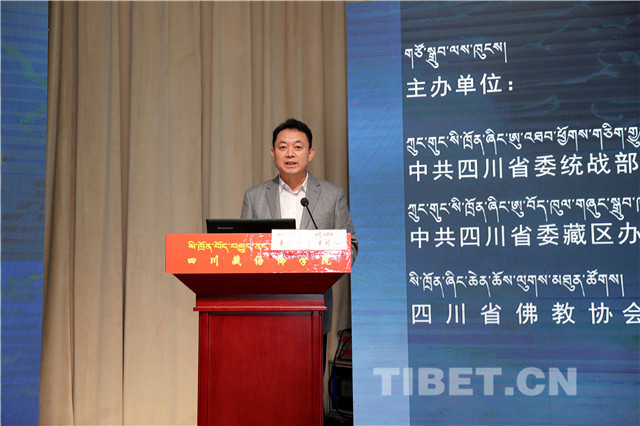 图为四川省委统战部副部长、省委藏区办主任沈阳主持开幕式及讲堂。