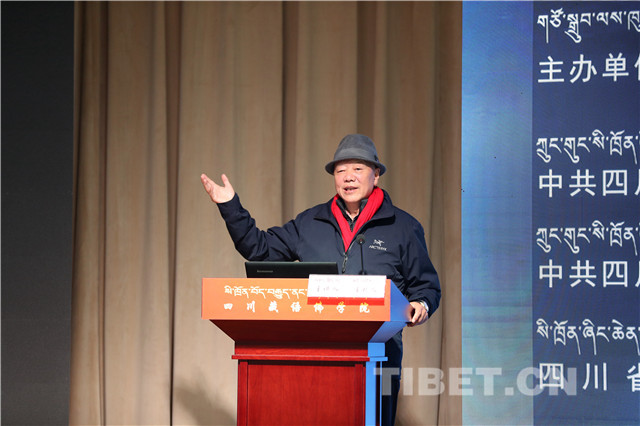 图为中央文史研究馆馆员、国家一级美术师、著名藏族画家尼玛泽仁主讲。