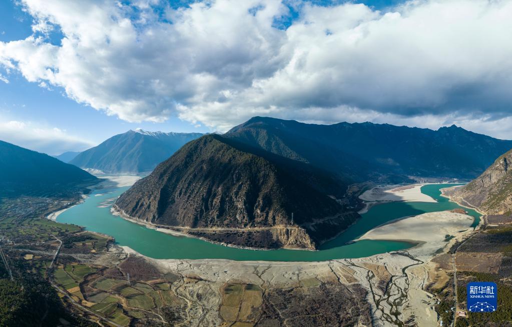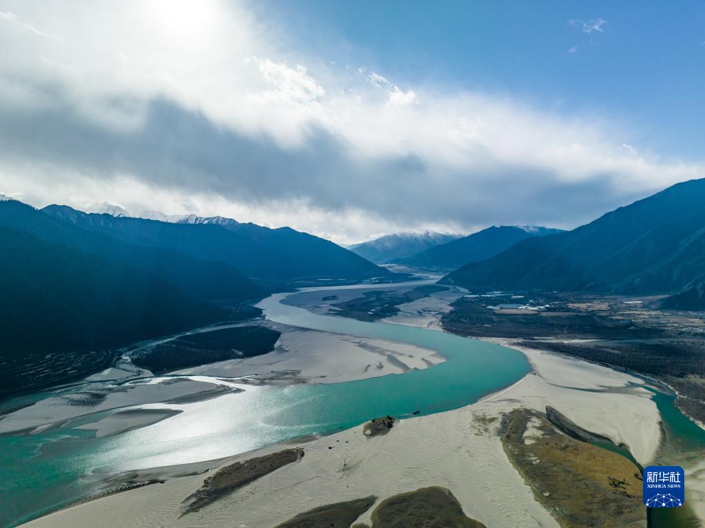 12月18日拍摄的雅鲁藏布江米林段滩涂风光(无人机照片)。新华社发(董志雄 摄)