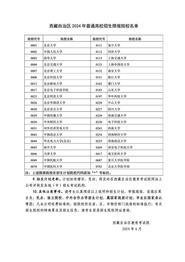 计划如有增补、变动,将及时在西藏自治区教育考试院网站上公布并转发各地(市)招生考试机构。 10、其他注意事项
