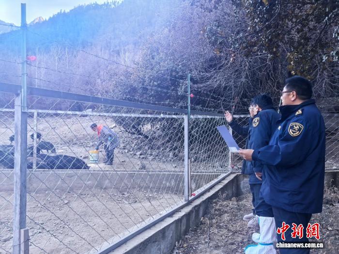12月15日,拉萨海关所属林芝海关关员对藏香猪养殖场进行现场考核。拉萨海关 供图