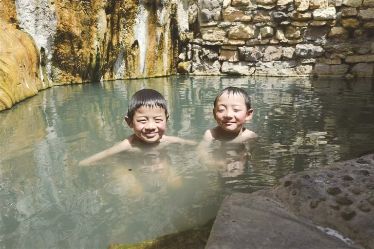 孩子们在德仲温泉玩耍。图由次昂提供