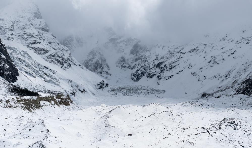 相较之下,白普隆沟的春天要来得晚一些,这里是“谷中之谷”,谷外山花盛开时,这里的风雪似乎还在奏着冬的尾调。