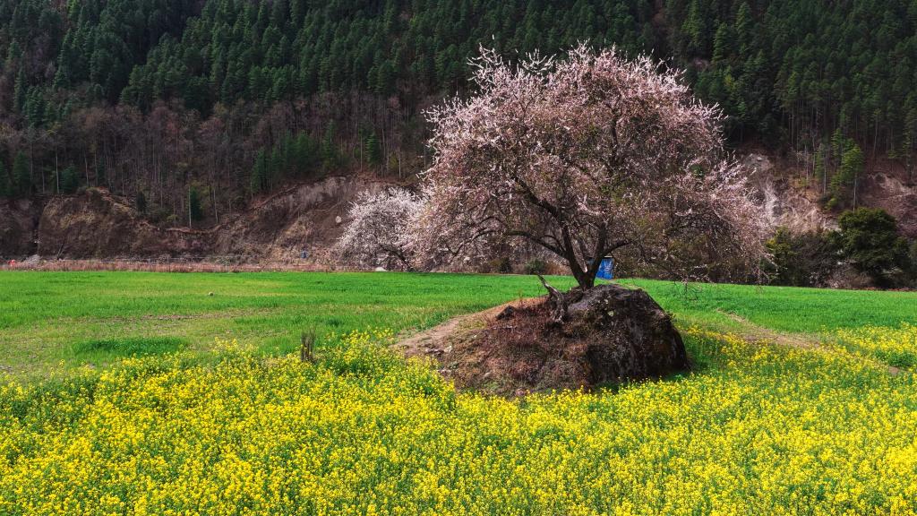 西藏林芝市波密县的油菜花与桃花。新华社记者 普布次仁 摄