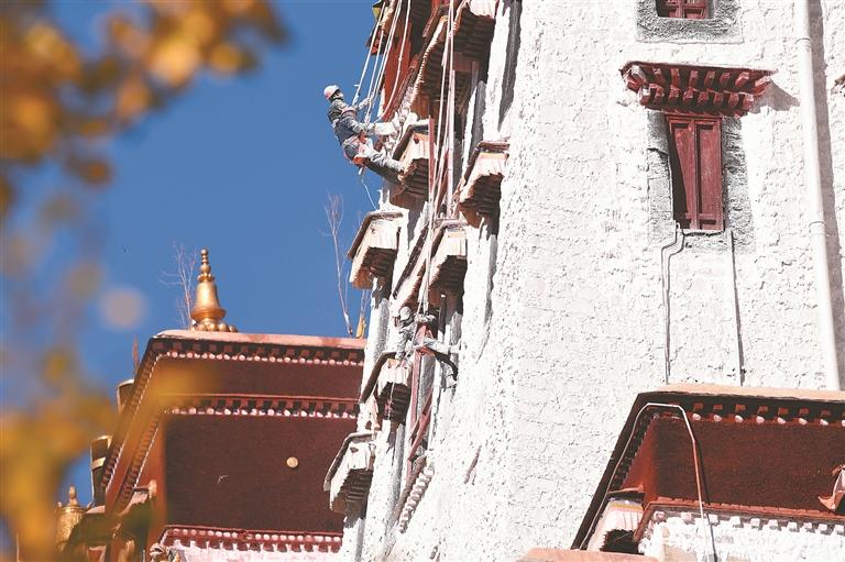 10月22日,拉萨布达拉宫迎来一年一度的粉刷季,人们手持工具,将涂料逐层涂刷在布达拉宫墙上。近日,改革先锋、践行“工匠精神”的优秀代表许振超和改革先锋、保卫改革开放和平环境的战斗英雄韦昌进也走进山东高校,讲述奋斗故事,激励青年学生勇于追梦。