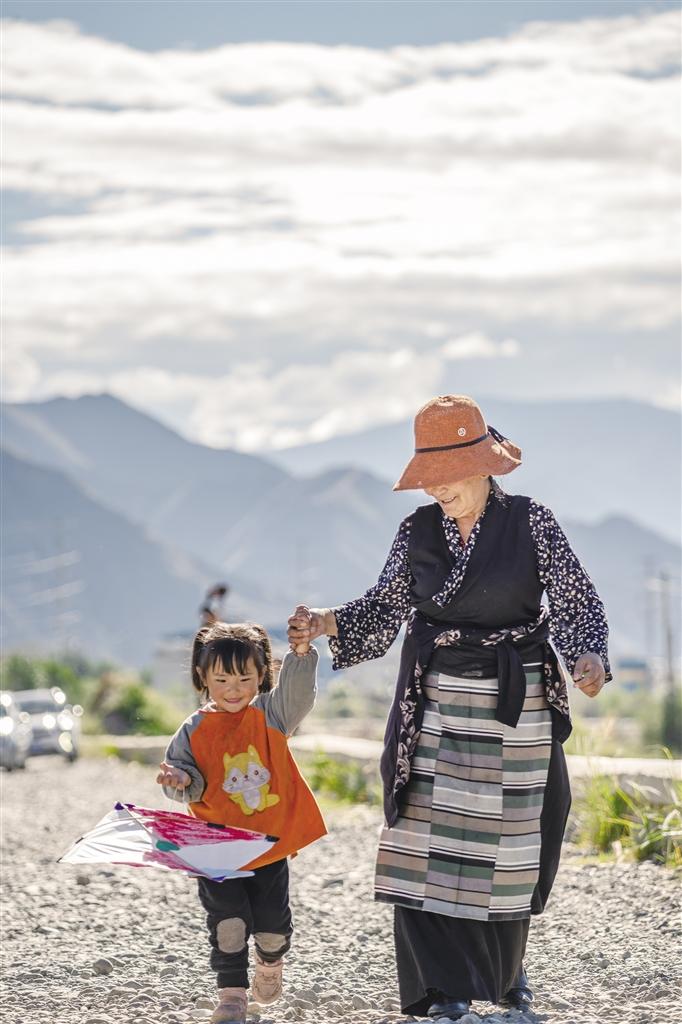女孩与风筝。 记者 阿旺尼玛 摄