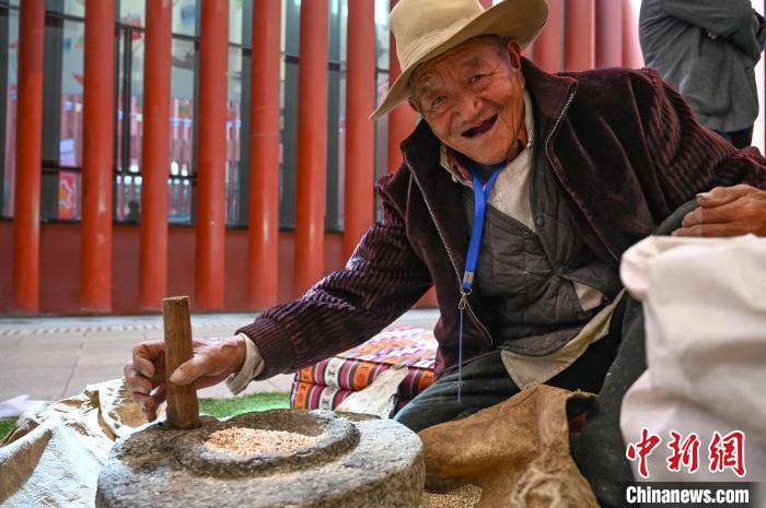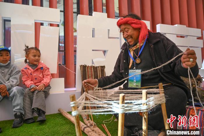图为工作人员展示牦牛毛编制技艺。贡确 摄