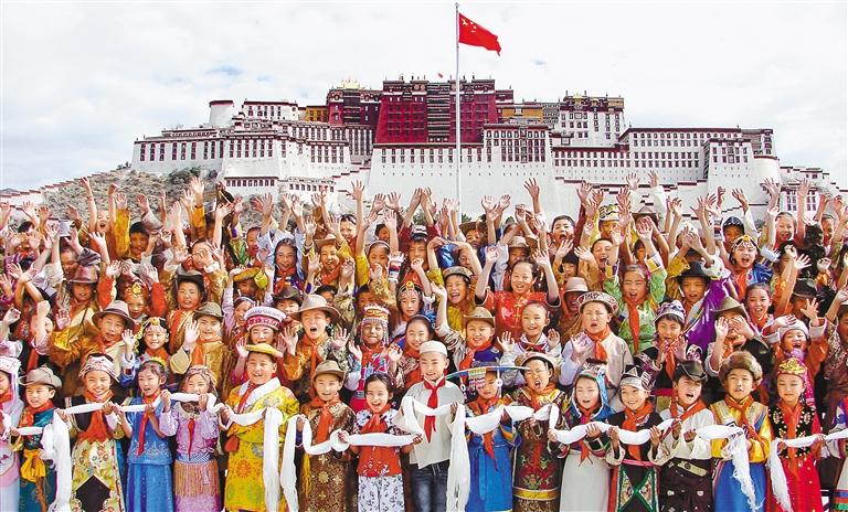 各族儿童祝福伟大祖国繁荣昌盛(资料图片)。