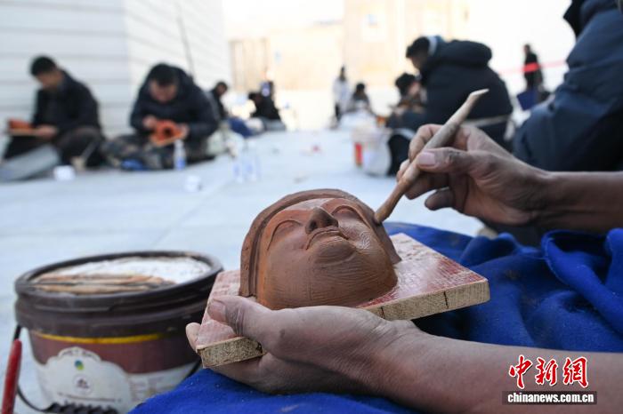 11月23日,第二届“工巧杯”西藏工艺美术中青年高技能人才技艺大赛现场实操技能在拉萨市唐卡艺术博物馆开赛。本次大赛以“薪火相传 守正创新”为主题,由284名选手来自西藏6(市)地的42个县(区),涵盖唐卡、雕塑、编织等36类工艺。据悉,西藏工艺美术行业现有2700余家市场主体、3.7万余名从业者,2024年产值超30亿元(人民币)。图为参赛选手在制作泥塑佛像。中新社记者 贡嘎来松 摄