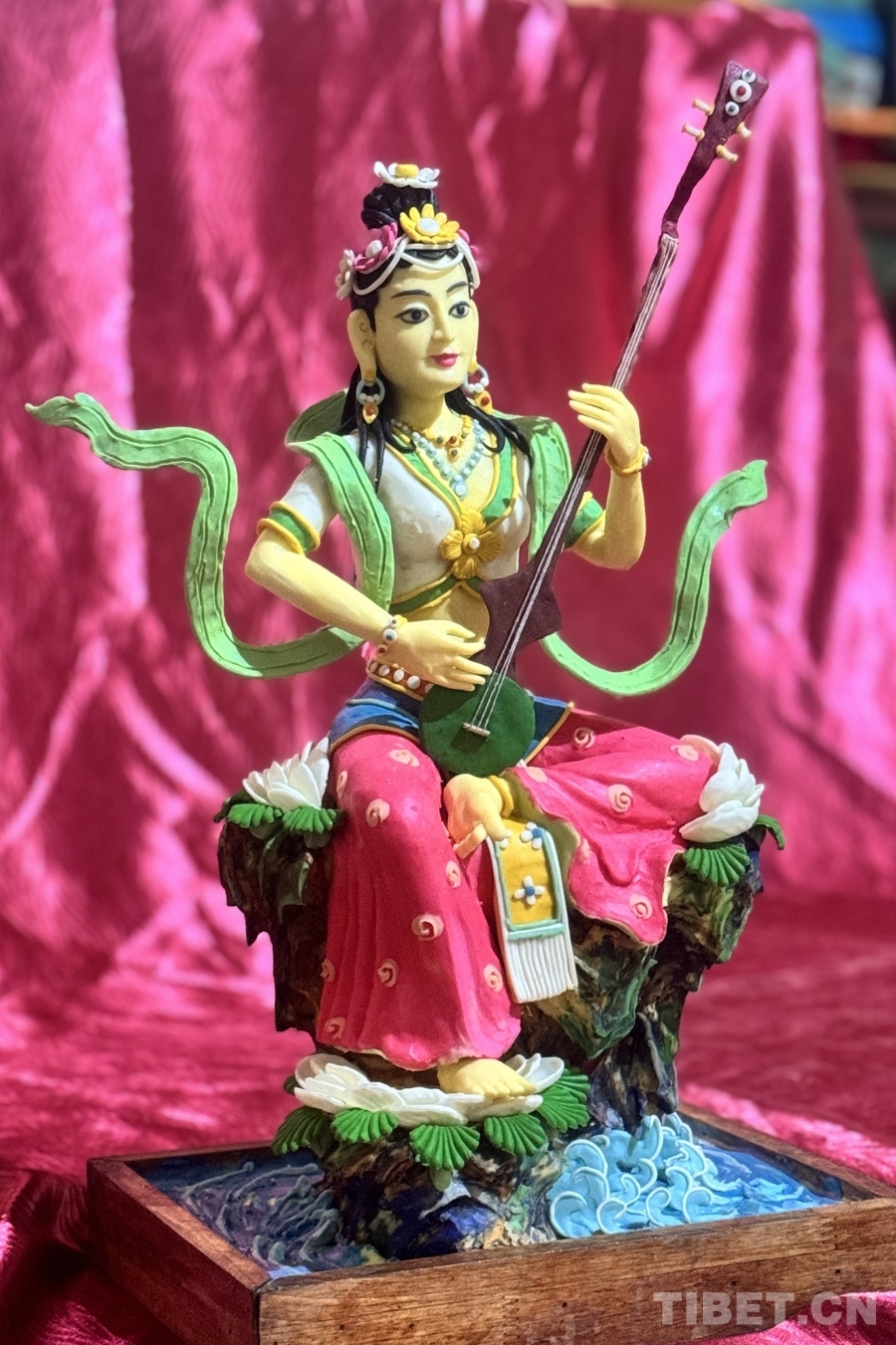 酥油花,这一源于青藏高原的独特艺术形式,以酥油为媒,由信仰而生,在琼科寺僧人的手中不断焕发出跨越时空的艺术生命力。今年的展佛活动中,琼科寺共展出新制作的5座酥油花作品,其中既有传统题材的“祭祀女神”飞天图案,也有展现寺院风貌的立体模型,更有融合时代精神的“56个民族天安门大联欢”“天安门与布达拉宫金桥相连”等现实题材作品。这些作品不仅技艺精湛、构思巧妙,更在传统与现代之间架起了一座文化桥梁。